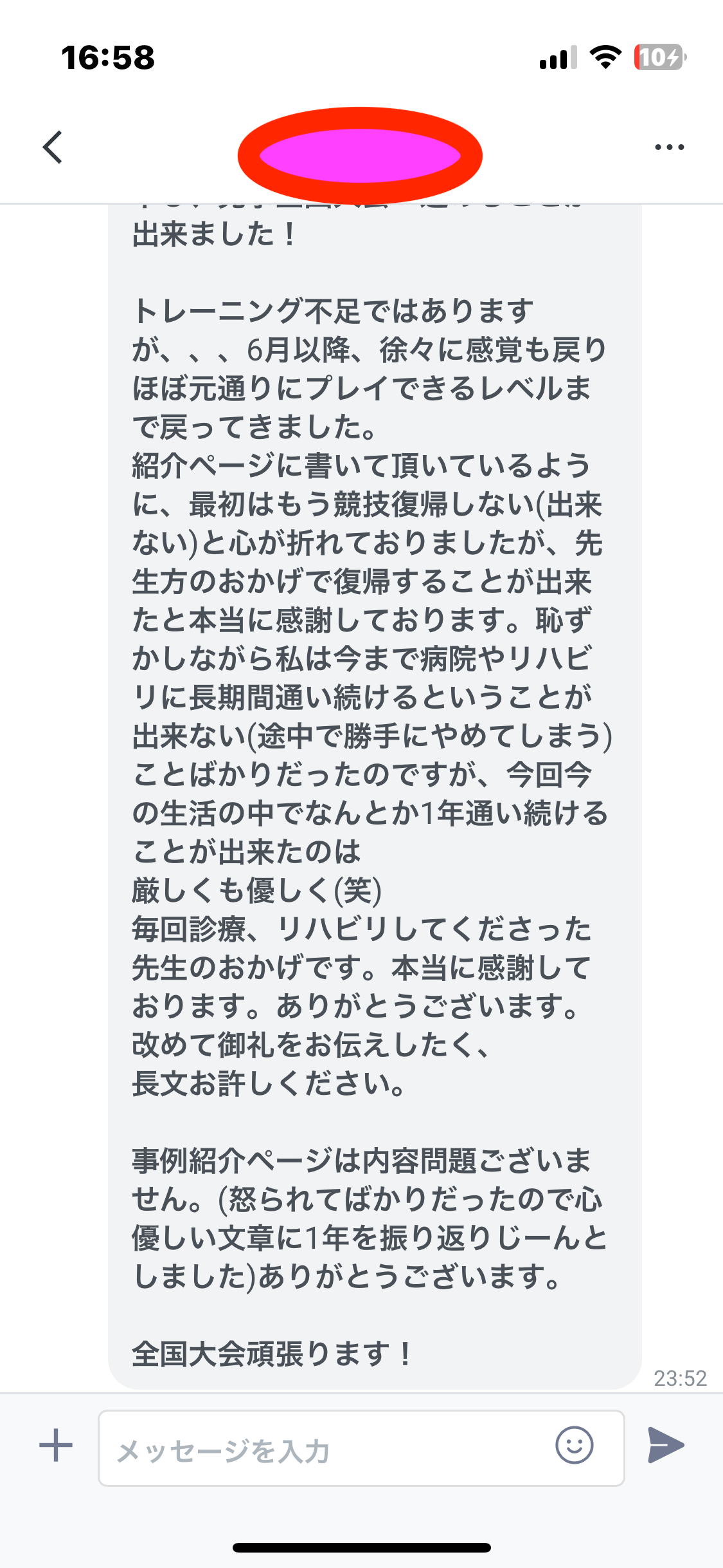 ご多忙な方でしたが、当院の保存療法を徹底的におこないました。