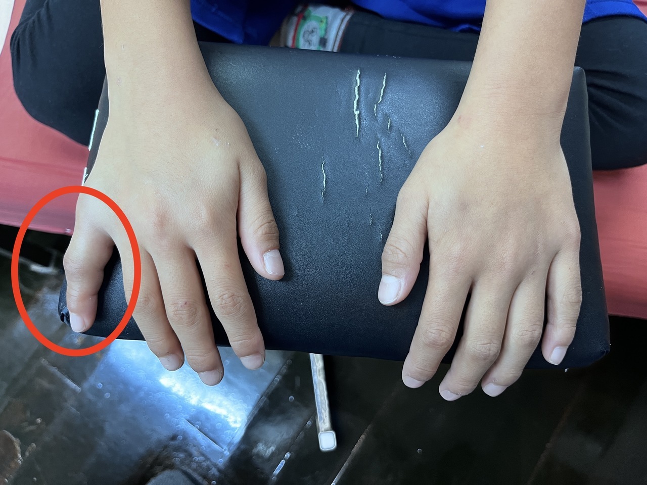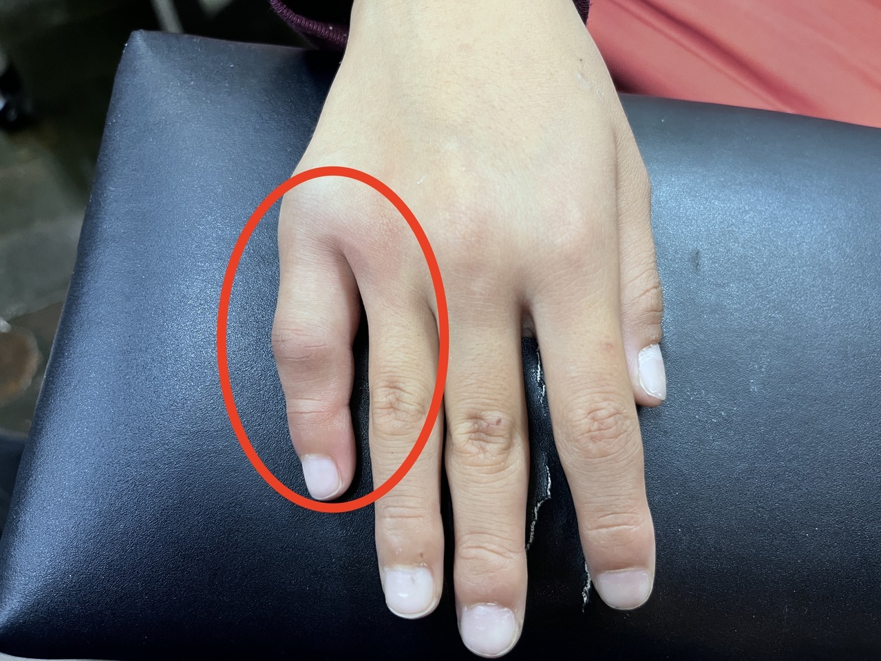 サッカーのキーパーをしている時に、ボールが手に当たり小指の骨を骨折してしまいました。